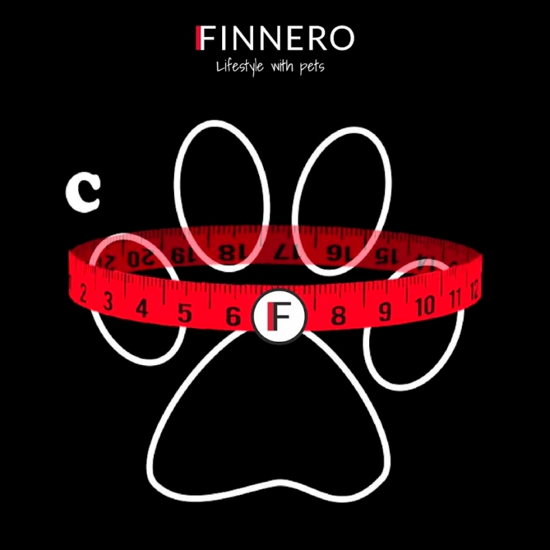 C) Tassun ympäryys: Pyöräytä mittanauha renkaaksi ja pujota tassu sen läpi. Mittaa ympärysmitta tassun leveimmästä ja korkeimmasta kohtaa.