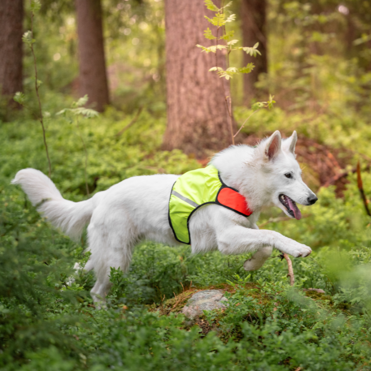 FINNERO UKKO metsästysliivi on tehokas kaksivärinen heijastin/huomioliivi metsästävälle koiralle, sopien myös arkikäyttöön.