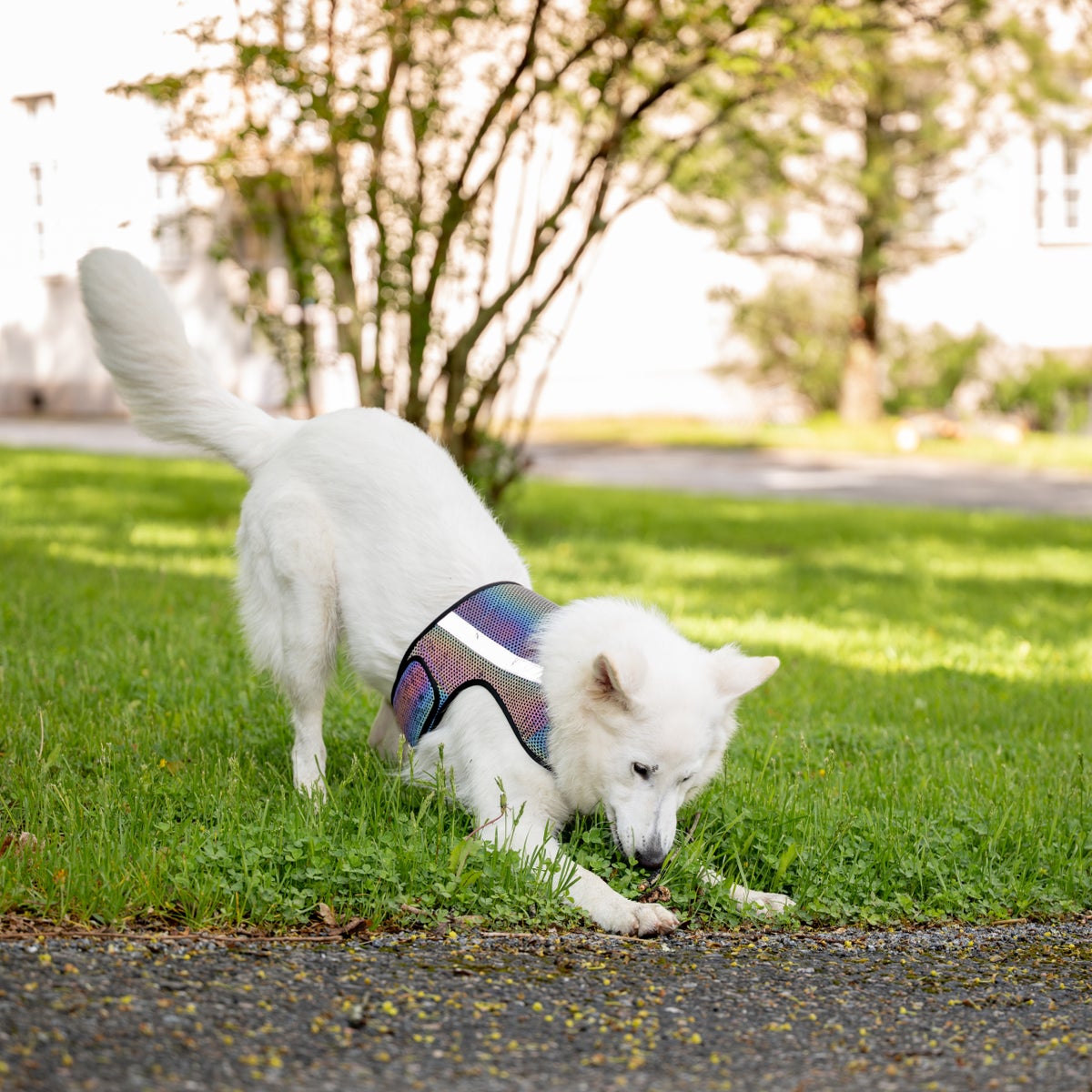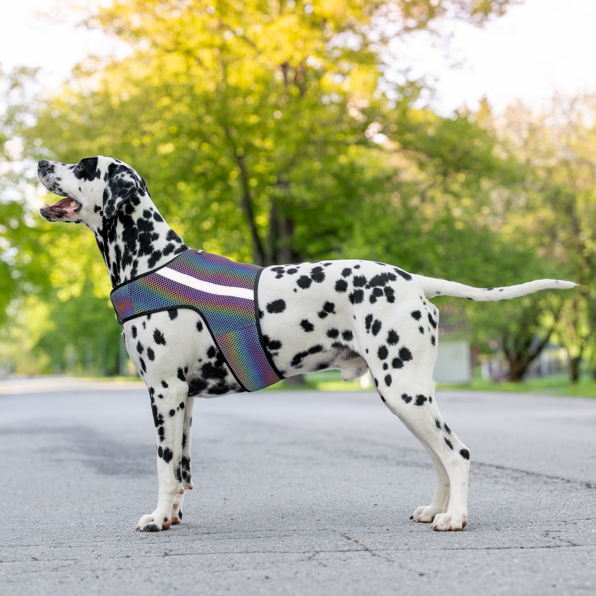 FINNERO GLOW -heijastinliivi on täydellinen yhdistelmä turvallisuutta ja tyyliä. Liivin monivärinen, sateenkaaren sävyissä hohtava pinta yhdistettynä tehokkaaseen heijastinnauhaan takaa, että koirasi näkyy hämärässä ja pimeässä – ja tekee sen näyttävästi.